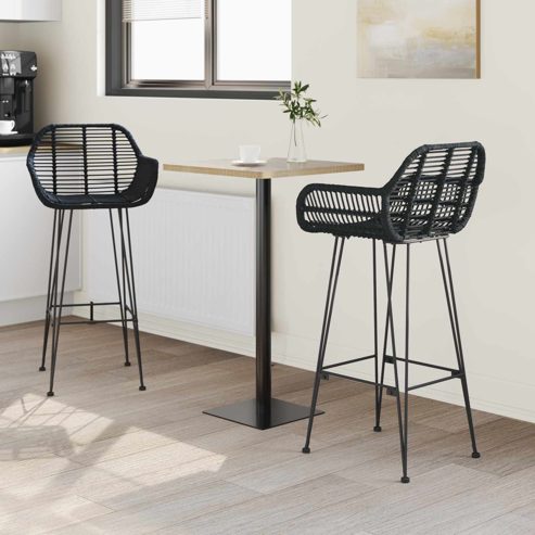 vidaXL Barstuhl 2 pcs Schwarz 55 x 52 x 92 cm Rattan und Eisen
