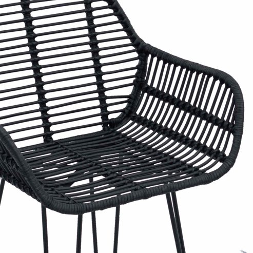 Dieser hochlehne Barhocker mit Armlehnen verbindet modernes Design mit Komfort und bietet eine stilvolle Sitzgelegenheit für dein Wohnzimmer oder deine Küche. Die schlanken, modernen Linien machen die Optik aus, während das angenehme und funktionale Design jeden Raum aufwertet. Handgewebtes Rattan-Design: Die Rückenlehne und Armlehnen aus Rattan sorgen für natürliche Wärme und feine Details in deinem Raum. Das handgewebte Muster gibt jedem Stück einen einzigartigen Look und bietet gleichzeitig Atmungsaktivität sowie ergonomische Unterstützung für Rücken und Arme. Unterstützende Rückenlehne: Die hohe Rückenlehne bietet viel Halt, was nicht nur schick aussieht, sondern auch praktisch ist für lange Gespräche oder Mahlzeiten. Sie passt sich der natürlichen Form deiner Wirbelsäule an und minimiert Unannehmlichkeiten beim längeren Sitzen, was dir mehr Komfort bietet. Bequeme integrierte Fußstütze: Um noch mehr Bequemlichkeit zu schaffen, hat dieser Hocker eine stabile Fußstütze. Ihr integriertes Design ermöglicht es dir, deine Füße bequem zu entspannen, reduziert die Müdigkeit der Beine und macht den Hocker perfekt für gesellige Abende oder zum Entspannen. Robuster Eisenrahmen: Dieser Hocker besteht aus verstärktem Eisen und ist extrem stabil, was Langlebigkeit und Stabilität garantiert. So kannst du ihn über Jahre hinweg täglich nutzen und er bleibt ein fester Teil deines Zuhauses. Moderner minimalistischer Stil: Mit einem schlanken, minimalistischen Ansatz, der moderne Designprinzipien widerspiegelt, fügt sich dieser Hocker super in jedes zeitgenössische Inneneinrichtungsprojekt ein und bringt Eleganz, ohne das bestehende Dekor zu überladen. ** Farbe: Schwarz ** Material: Rattan und Eisen ** Gesamtabmessungen: 55 x 52 x 92 cm (L x B x H) ** Gewicht: 16,1 kg ** Langlebig ** Handgewebtes Rattandesign ** Unterstützende Rückenlehne ** Bequeme integrierte Fußstütze ** Armlehnenhöhe vom Sitz aus: 19 cm ** Sitzbereich: 55 x 52 cm (B x T) ** Sitzhöhe vom Boden: 76 cm ** Rahmenmaterial: Eisen ** Max. Gewicht: 220 kg ** Nur für den Innenbereich ** Lieferumfang: ** 2 x Barhocker ** Montage erforderlich: Ja