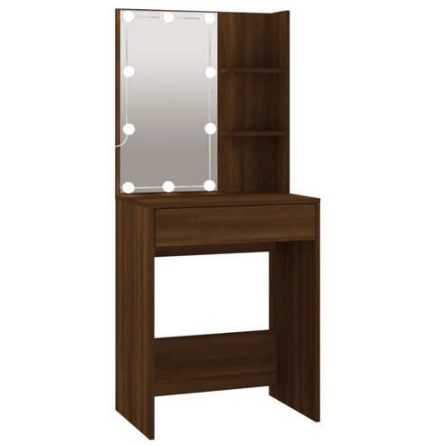 vidaXL LED-Schminktisch mit Schränken Braun Eichen-Optik Holzwerkstoff