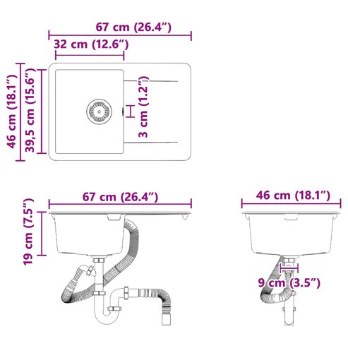 Dieses moderne Küchenspülbecken bringt Eleganz in dein Zuhause und vereint Funktionalität mit einem stylischen Design. Aus robustem Granit gefertigt, passt es perfekt in viele verschiedene Küchen und bietet sowohl ansprechenden Look als auch praktische Anwendungsmöglichkeiten. Seine simple rechteckige Form fügt sich nahtlos in unterschiedliche Küchenstile ein und überzeugt durch Langlebigkeit und Robustheit beim täglichen Gebrauch. Aus Granit gefertigt: Dieses Spülbecken ist aus Granit, der für seine Stabilität und Widerstandsfähigkeit gegen Hitze, Kratzer und Flecken bekannt ist. Es bringt nicht nur zeitlose Eleganz mit, sondern ist auch super langlebig – perfekt für belebte Küchen, wo oft gekocht und aufgeräumt wird. Modern und minimalistisch: Das Spülbecken wurde mit Fokus auf Einfachheit gestaltet und hat klare Linien, die zu modernen Küchen passen. Sein schlichtes Design fügt sich leicht in verschiedene Wohnstile ein und verbessert die Atmosphäre deiner Küche, während es gleichzeitig die Funktionalität und einfache Pflege erhält. Problemlose Wartung: Die Pflege dieses Spülbeckens ist kinderleicht, dank der strapazierfähigen Granitoberfläche, die Flecken abweist und einfache Reinigung ermöglicht. Egal, ob heiße Töpfe oder tägliche Verschüttungen – die Fläche bleibt mit minimalem Aufwand makellos. Rechteckiges Design: Die rechteckige Form maximiert den nutzbaren Raum und passt perfekt in moderne Küchenlayouts. Diese Form eignet sich optimal für verschiedene Kochaktivitäten, vom Vorbereiten bis zum Aufräumen, und sorgt für ein gut organisiertes Gefühl in deiner Küche. Einfacher Zusammenbau: Das Spülbecken kommt als komplette Einheit und enthält leicht verständliche Montageanleitungen. Dadurch wird die Installation zum Kinderspiel und die Integration in deine Küche geht ohne großen Aufwand. ** Farbe: Schwarz ** Material: Granit ** Gesamtabmessungen: 670 x 460 mm (L x B) ** Gewicht: 8,7 kg ** Hitzebeständig ** Einfache Montage und Pflege ** Lieferumfang: ** 1 x Waschbecken ** Montage erforderlich: Ja