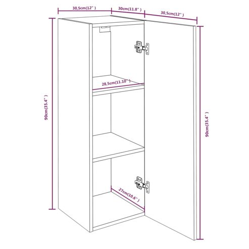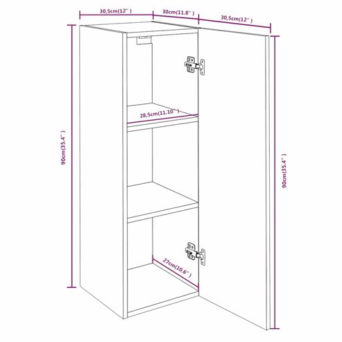 Diese TV-Hängeschränke verfügen über ein schlankes und stilvolles Design, was sie zu einer dekorativen und praktischen Ergänzung für jede Einrichtung macht. Premium Material: Holzwerkstoff ist mit seiner glatten Oberfläche ein Material hoher Qualität, das sich durch Festigkeit, Stabilität und Feuchtigkeitsbeständigkeit auszeichnet. Moderner Stil: Diese Wandschränke bringen einen modernen Stil in deine bestehende Einrichtung! Die Schränke im modernen Design zeichnen sich durch klare Linien und einen minimalistischen Look aus. Bequemer Zusammenbau: Du kannst die Tür auf der linken oder rechten Seite montieren, je nachdem, wie es dir gefällt.Viel Stauraum: Dank großen Stauraum, den die Schränke zur Verfügung stellen, kannst du mehr Ordnung in deinem Zuhause schaffen. Hinweis:Schrauben und Dübel für die Wandbefestigung sind nicht enthalten. Suchen und verwenden Sie die für Ihre Wände geeigneten Schrauben und Dübel. Wenn Sie unsicher sind, suchen Sie professionelle Hilfe. Lesen und befolgen Sie jeden Schritt der Anleitung sorgfältig. ** Farbe: Grau Sonoma ** Material: Holzwerkstoff ** Abmessungen: 30,5 x 30 x 90 cm (B x T x H) ** Maximale Belastbarkeit (insgesamt): 60 kg ** Zusammenbau erforderlich: Ja Lieferung umfasst: ** 2 x TV-Schrank