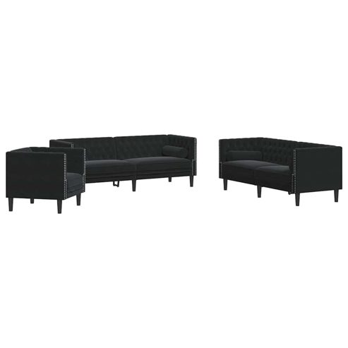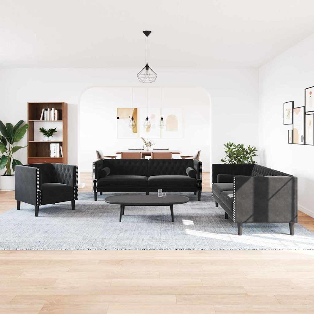 Sofa Set 3 pcs Schwarz Samt