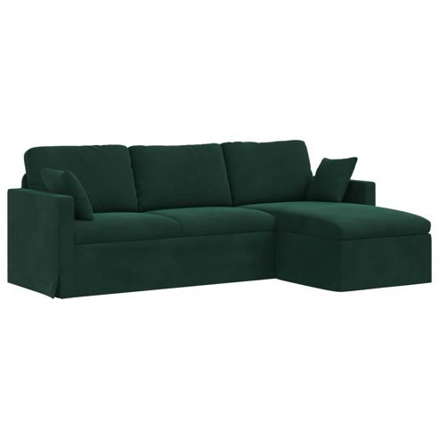 Dieses moderne Sofa bringt frischen Wind in dein Zuhause. Mit seinem schicken Design und den praktischen ergonomischen Eigenschaften gibt es jedem Raum einen Hauch von Eleganz. Es kombiniert nützliche Funktionen mit einem stilvollen Look, der sich vielseitig einsetzen lässt. Dank der glatten Oberfläche kannst du nach einem stressigen Tag herrlich entspannen; es wird zum perfekten Mittelpunkt für ruhige Momente oder gesellige Runden. Hochwertige Materialien: Das Sofa hat einen stabilen Metallrahmen, der für Langlebigkeit sorgt, und die elegante Samtoberfläche sieht nicht nur toll aus, sondern ist auch atmungsaktiv und praktisch. Inklusive Komponenten: Es hat armlehnen aus Holzwerkstoff, die guten Halt bieten, plus Kissen mit Schaumfüllung für zusätzlichen Komfort. Die Kombination mit den glatten Kunststofffüßen sorgt für ein traditionelles und modernes Flair. Robuste Konstruktion: Der Rahmen ist stabil und solide, was Sicherheit bei der Nutzung bietet. Jedes Teil ist sorgfältig ausgewählt, um dir die richtige Haltung und den besten Komfort zu garantieren. Empfohlene Verwendungen: Das Sofa ist perfekt für Wohnzimmer oder Schlafzimmer, da es sowohl Flexibilität als auch Stil bietet. Egal ob du entspannst oder Gäste bewirtest, es kommt immer gut an. Pflege & Wartung: Die Pflege ist einfach: Wisch es mit einem trockenen Tuch ab, um sein schönes Aussehen zu erhalten. Regelmäßige Pflege sorgt dafür, dass dieses tolle Stück lange schön bleibt. ** Farbe: Dunkelgrün ** Beinfarbe: Schwarz ** Upholstery material: Samt ** Füllmaterial: Schaum, Faser ** Armlehnenmaterial: Holzwerkstoff ** Beinmaterial: Kunststoff ** Gesamtabmessungen: 228 x 134 x 80 cm (B x T x H) ** Sitzbreite: 210 cm ** Sitztiefe: 52 cm ** Armlehnenhöhe vom Sitz aus: 16 cm ** Max. Gewicht: 110 kg/Sitz ** Langlebig ** Ergonomisches Design ** Robuste Bauweise ** Stabiles und robustes Gestell ** Bequemer Sitzpolster ** Nur für den Innenbereich ** Montage erforderlich: Ja ** Lieferumfang: ** 1 x Sofa