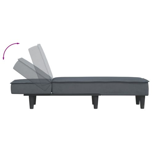 Diese Chaiselongue ist eine ausgezeichnete Wahl, um eine gemütliche Entspannungsecke für eine Person in deinem Zuhause zu schaffen. Multifunktional: Die Chaiselongue ist eine kluge Wahl, wenn du über wenig Platz verfügst. Sie lässt sich in 3 Positionen zum Sitzen, Entspannen und Schlafen verstellen und dient daher sowohl als gemütliche Chaiselongue für den täglichen Gebrauch als auch als Gästebett.Bequemes Sitzerlebnis: Samt ist ein weicher und gemütlicher Stoff, der sich angenehm auf der Haut anfühlt. Mit Samt bezogen und mit Schaumstoff hoher Dichte gepolstert, bietet diese Liege einen gemütlichen Platz zum Sitzen und Schlafen.Robuster und stabiler Rahmen: Der Rahmen aus Sperrholz verleiht der verstellbaren Chaiselongue Robustheit und Stabilität.Elegante Optik: Mit seinen eleganten Details und der prägnanten Struktur ist das Loungesofa eine gemütliche und zugleich moderne Bereicherung für dein Wohnzimmer. ** Farbe: Dunkelgrau ** Material: Samt (100 % Polyester), Sperrholz ** Füllung: Schaumstoff ** Gesamtabmessungen (in Sitzposition): 55 x 140 x 70 cm (B x T x H) ** Gesamtabmessung (in Liegeposition): 55 x 155 x 33 cm (B x T x H) ** Sitzlänge: 55 cm ** Sitzhöhe vom Boden: 33 cm ** Fuß-Höhe: 15 cm ** Max. Tragfähigkeit (pro Sitz ): 110 kg ** Zusammenbau erforderlich: Ja Maximal 110 kg pro Sitzplatz. Achte auf die Gefahr von offenem Feuer und anderen starken Wärmequellen in der Nähe des Produkts.