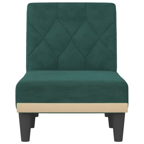 Diese Chaiselongue ist eine ausgezeichnete Wahl, um eine gemütliche Entspannungsecke für eine Person in deinem Zuhause zu schaffen. Multifunktional: Die Chaiselongue ist eine kluge Wahl, wenn du über wenig Platz verfügst. Sie lässt sich in 3 Positionen zum Sitzen, Entspannen und Schlafen verstellen und dient daher sowohl als gemütliche Chaiselongue für den täglichen Gebrauch als auch als Gästebett.Bequemes Sitzerlebnis: Samt ist ein weicher und gemütlicher Stoff, der sich angenehm auf der Haut anfühlt. Mit Samt bezogen und mit Schaumstoff hoher Dichte gepolstert, bietet diese Liege einen gemütlichen Platz zum Sitzen und Schlafen.Robuster und stabiler Rahmen: Der Rahmen aus Sperrholz verleiht der verstellbaren Chaiselongue Robustheit und Stabilität.Elegante Optik: Mit seinen eleganten Details und der prägnanten Struktur ist das Loungesofa eine gemütliche und zugleich moderne Bereicherung für dein Wohnzimmer. ** Farbe: Dunkelgrün ** Material: Samt (100 % Polyester), Sperrholz ** Füllung: Schaumstoff ** Gesamtabmessungen (in Sitzposition): 55 x 140 x 70 cm (B x T x H) ** Gesamtabmessung (in Liegeposition): 55 x 155 x 33 cm (B x T x H) ** Sitzlänge: 55 cm ** Sitzhöhe vom Boden: 33 cm ** Fuß-Höhe: 15 cm ** Max. Tragfähigkeit (pro Sitz ): 110 kg ** Zusammenbau erforderlich: Ja Maximal 110 kg pro Sitzplatz. Achte auf die Gefahr von offenem Feuer und anderen starken Wärmequellen in der Nähe des Produkts.