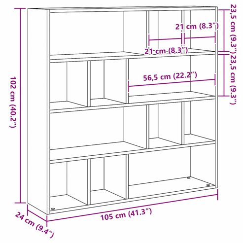 Dieses Bücherregal ist eine praktische und zugleich dekorative Ergänzung für Ihren Wohnraum. Stabiles und langlebiges Material: Holzwerkstoff ist ein langlebiges und stabiles Material mit einer glatten Oberfläche, die feuchtigkeitsbeständig, verzugs- und spaltbeständig ist und sich daher für eine Vielzahl von Projekten bewährt.Reichlich Stauraum: Das Bücherregal bietet reichlich Stauraum, um Ihre Zeitschriften, Bücher, DVDs, Multimediageräte und andere Dekorationsgegenstände übersichtlich und griffbereit aufzubewahren.Vielseitige Einsatzmöglichkeiten: Das Bücherregal kann auch als Raumteiler verwendet werden und passt problemlos in jeden Raumstil. Sie können ihn im Wohnzimmer zur Präsentation von Dekoration, im Arbeitszimmer zur Aufbewahrung von Büchern und Dokumenten, im Schlafzimmer zur Aufbewahrung von Alltagsgegenständen und im Keller zur Aufbewahrung von Kleinkram aufstellen.Praktische Oberseite: Die stabile Oberseite eignet sich ideal zum Abstellen Ihrer Kleinigkeiten oder einiger Dekorationsgegenstände wie Vasen oder Topfpflanzen.Pflegeleicht: Dank seiner glatten Oberfläche lässt sich der Bücherständer leicht mit einem feuchten Tuch reinigen und benötigt weniger Pflege. Warnung:Um ein Umkippen zu verhindern, muss dieses Produkt mit der mitgelieferten Wandhalterung verwendet werden. ** Farbe: Schwarze Eiche ** Material: Holzwerkstoff ** Maße: 105 x 24 x 102 cm (B x T x H) ** Montage erforderlich: Ja