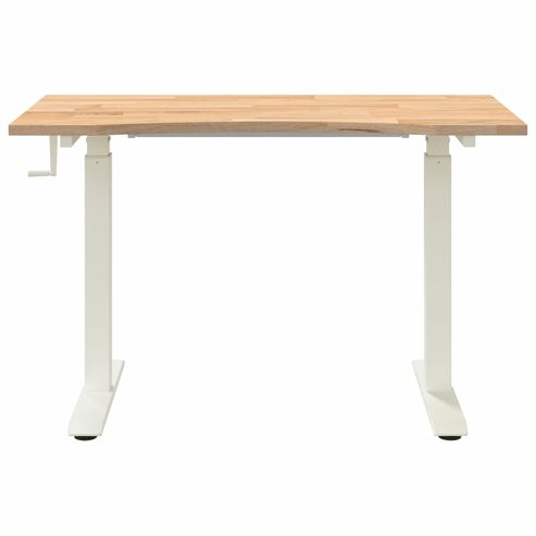 Der höhenverstellbare Schreibtisch gibt neuen Schwung in die Idee eines funktionalen und stylischen Arbeitsplatzes. Mit seinem schlichten Design und den verstellbaren Funktionen passt er perfekt in moderne Lebensstile und bringt Flexibilität und Stil in jedes Home Office oder Wohnzimmer. Egal, ob du Ideen aufschreibst oder an einem Online-Meeting teilnimmst, die Höhenverstellung hilft dir, bequem zu arbeiten und immer in der richtigen Position zu sitzen. Stylische Materialien Der Tisch aus massivem Eichenholz kombiniert die natürliche Wärme des Holzes mit einem eleganten Stahlrahmen und schafft so einen tollen Kontrast. Diese Materialien sind nicht nur schön, sondern auch strapazierfähig und langlebig. Höhenverstellbarer Mechanismus Wechsel ganz easy zwischen Sitzen und Stehen beim Drehen des Griffs. Diese Flexibilität sorgt für eine bessere Arbeitsumgebung und bietet den ergonomischen Komfort, den du brauchst, um den ganzen Tag konzentriert zu bleiben. Robuste Konstruktion Der Tisch hat einen stabilen Stahlrahmen, der für Festigkeit und Langlebigkeit sorgt. Diese starke Materialkombination stellt sicher, dass er alltagstauglich ist und dir über die Jahre hinweg einen verlässlichen Arbeitsplatz bietet. Platzversatilität Perfekt für drinnen – ob im Schlafzimmer, Wohnzimmer oder in der Garage. Seine Flexibilität macht ihn ideal für verschiedene Einsätze und wird zum schicke Zentrum für Kreativität und Produktivität in deinem Zuhause. Praktische Pflege Halte ihn in top Zustand mit einfachen Pflegetipps. Vermeide raue Materialien und aggressive Reinigungsmittel, damit die glatte Oberfläche mit minimalem Aufwand schön bleibt. ** Farbe: Weiß und Natur ** Material: Massivholz Eiche ** Gesamtabmessungen: 120 x 60 x 115,5 cm (L x B x H) ** Höhenverstellbar ** Breitenverstellbar ** Langlebig ** Verstellbare Min/Max Maße: 73,5-115,5 cm ** Rahmenmaterial: Stahl ** Nur für den Innenbereich ** Lieferumfang: ** 1 x Schreibtisch ** Montage erforderlich: Ja