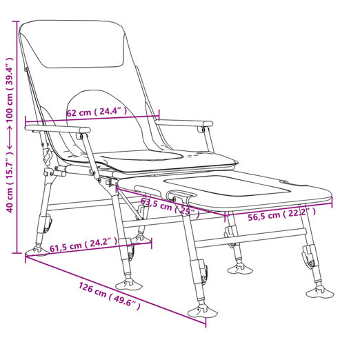 Diese klappbare Angelliege weist ein optisch ansprechendes und praktisches Design auf und eignet sich daher ideal für verschiedene Aktivitäten im Innen- und Außenbereich. Langlebig und robust: Die Angelliege besteht aus Stahl mit Pulverbeschichtung und ist daher robust und auf eine lange Lebensdauer ausgelegt.Praktisches Design: Die verstellbaren Beine der Liege sind mit Schlammkappen ausgestattet, die eine bequeme Nutzung selbst auf unebenem Gelände gewährleisten und das Einsinken in weichen Boden verhindern. Zudem lässt sich das Fußteil abnehmen und als separater Angelhocker verwenden.Bequem und praktisch: Die Fischerliege ist mit einer Schaumstoffpolsterung ausgestattet, die gut isoliert, sich leicht reinigen lässt und gleichzeitig Sitzkomfort bietet. Zudem lässt sich die Rückenlehne von 0 bis 180 Grad verstellen, wodurch Rücken und Oberschenkel entlastet werden, um eine bequeme Sitz- oder Liegeposition den ganzen Tag über zu genießen.Vielseitig einsetzbar: Dieses Angelbett lässt sich zusammenklappen und daher leicht verstauen und transportieren, was es zu einer idealen Wahl für Angeln, Campen oder andere Aktivitäten im Freien macht. ** Farbe: Grün und Schwarz ** Material des Gestells: Stahl mit Pulverbeschichtung ** Material der Sitzfläche: 600D Oxford-Gewebe mit Schaumstoffpolsterung ** Gesamtabmessungen: 126 x 62 x 40-100 cm (L x B x H) ** Abmessungen (zusammengeklappt): 60 x 70 x 20 cm (B x T x H) ** Gesamtlänge (in Liegeposition): 180 cm ** Sitzgröße (ohne Fußteil): 50 x 50 cm (B x T) ** Sitzhöhe vom Boden: 35-45 cm ** Winkel der Rückenlehne: 0-180 Grad ** Belastbarkeit: 180 kg