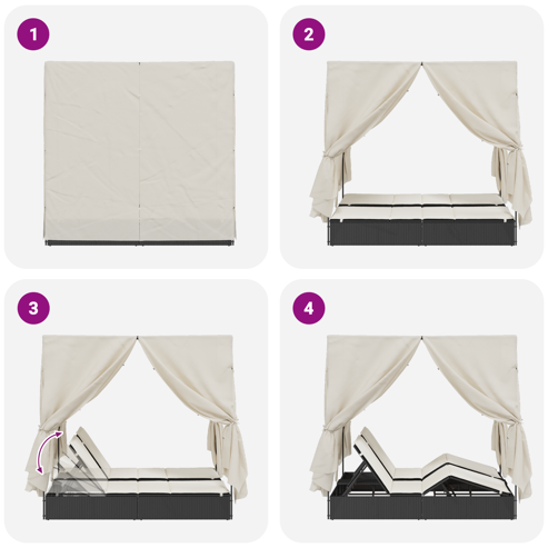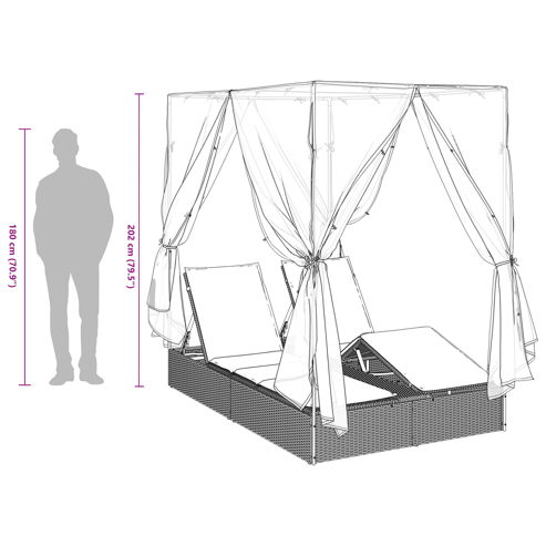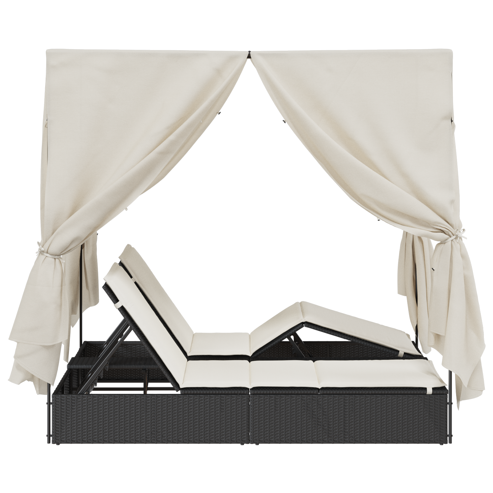 vidaXL Doppelte Sonnenliege mit Dach Schwarz 205 x 129 x 200 cm