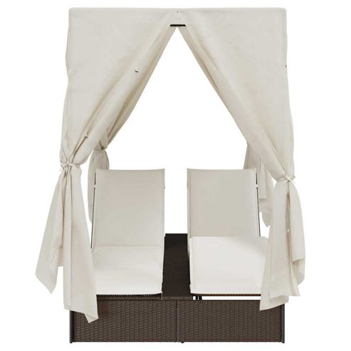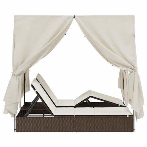 vidaXL Doppelte Sonnenliege mit Dach Braun 205 x 129 x 200 cm