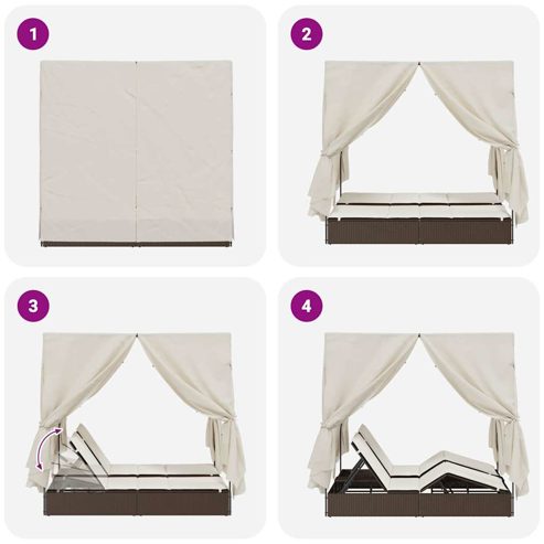 Check die coole Outdoor-Doppelsonnenliege mit Dach und Vorhängen aus – der perfekte Ort zum Relaxen im Freien. Stell dir vor, du genießt die Sonne an einem schönen Morgen oder chillst an einem kühlen Abend in dieser genialen Liege und genießt den Schatten. Mit ihrem schicken Design und der flexiblen Anordnung ist sie die perfekte Wahl für Gärten oder Terrassen und bietet dir ein fantastisches Outdoor-Erlebnis. Hochwertige Materialien: Die Liege ist aus Poly-Rattan, sieht schick aus und ist UV-beständig sowie wetterfest. Ihr Stahlrahmen bietet Stabilität und Langlebigkeit, also ideal für den Außeneinsatz. Inklusive Komponenten: Du bekommst ein Dach, 8 Seitenvorhänge und 2 Sitzkissen dazu. Die Vorhänge bieten Privatsphäre, und die abnehmbaren Kissenbezüge sind super easy zu reinigen. Funktionsverbesserndes Design: Mit verstellbaren Rückenlehnen- und Fußstützen findest du immer die perfekte Position, um zu relaxen, die Sonne zu genießen oder ein Buch zu lesen. Vielseitige Nutzung: Egal, ob in deinem Garten oder auf der Terrasse – diese Liege ist für jede Art von Spaß im Freien gedacht. Sie ist der perfekte Begleiter für Sommerabende beim Sonnenuntergang oder für ruhige Morgenstunden. Einfache Pflege: Die Sitzkissen haben abnehmbare Bezüge, die leicht zu waschen sind. Mit Poly-Rattan und Metallkonstruktion reicht eine schnelle Reinigung, also super pflegeleicht. ** Farbe: Braun ** Material: Pe rattan ** Gesamtabmessungen: 205 x 129 x 200 cm (L x B x H) ** Innen- / außenbereich: Nur für draußen ** Lieferung: ** 1 x Doppelte Sonnenliege, 1 x Dachdachstoff mit 8 Seitenvorhängen, 2 x Sitzkissen mit abnehmbarem und waschbarem Bezug ** Anzahl der elemente: 1 ** Versammlung erforderlich: Ja