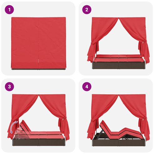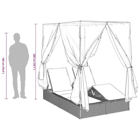 Check die coole Outdoor-Doppelsonnenliege mit Dach und Vorhängen aus – der perfekte Ort zum Relaxen im Freien. Stell dir vor, du genießt die Sonne an einem schönen Morgen oder chillst an einem kühlen Abend in dieser genialen Liege und genießt den Schatten. Mit ihrem schicken Design und der flexiblen Anordnung ist sie die perfekte Wahl für Gärten oder Terrassen und bietet dir ein fantastisches Outdoor-Erlebnis. Hochwertige Materialien: Die Liege ist aus Poly-Rattan, sieht schick aus und ist UV-beständig sowie wetterfest. Ihr Stahlrahmen bietet Stabilität und Langlebigkeit, also ideal für den Außeneinsatz. Inklusive Komponenten: Du bekommst ein Dach, 8 Seitenvorhänge und 2 Sitzkissen dazu. Die Vorhänge bieten Privatsphäre, und die abnehmbaren Kissenbezüge sind super easy zu reinigen. Funktionsverbesserndes Design: Mit verstellbaren Rückenlehnen- und Fußstützen findest du immer die perfekte Position, um zu relaxen, die Sonne zu genießen oder ein Buch zu lesen. Vielseitige Nutzung: Egal, ob in deinem Garten oder auf der Terrasse – diese Liege ist für jede Art von Spaß im Freien gedacht. Sie ist der perfekte Begleiter für Sommerabende beim Sonnenuntergang oder für ruhige Morgenstunden. Einfache Pflege: Die Sitzkissen haben abnehmbare Bezüge, die leicht zu waschen sind. Mit Poly-Rattan und Metallkonstruktion reicht eine schnelle Reinigung, also super pflegeleicht. ** Farbe: Braun ** Material: Pe rattan ** Gesamtabmessungen: 205 x 129 x 200 cm (L x B x H) ** Innen- / außenbereich: Nur für draußen ** Lieferung: ** 1 x Doppelte Sonnenliege, 1 x Dachdachstoff mit 8 Seitenvorhängen, 2 x Sitzkissen mit abnehmbarem und waschbarem Bezug ** Anzahl der elemente: 1 ** Versammlung erforderlich: Ja