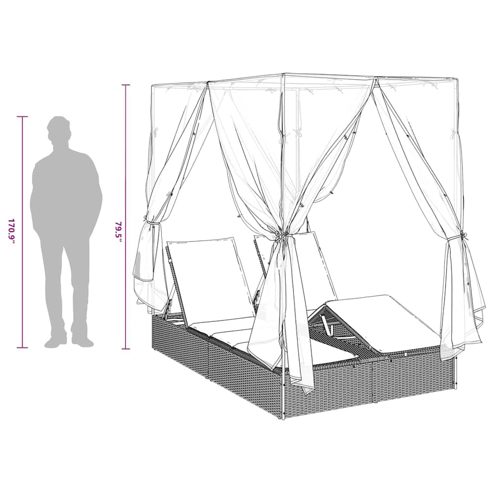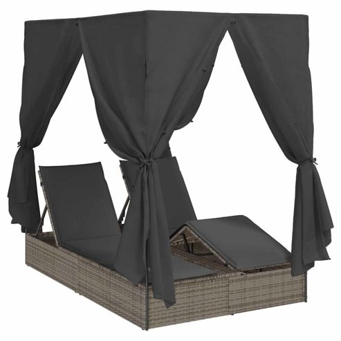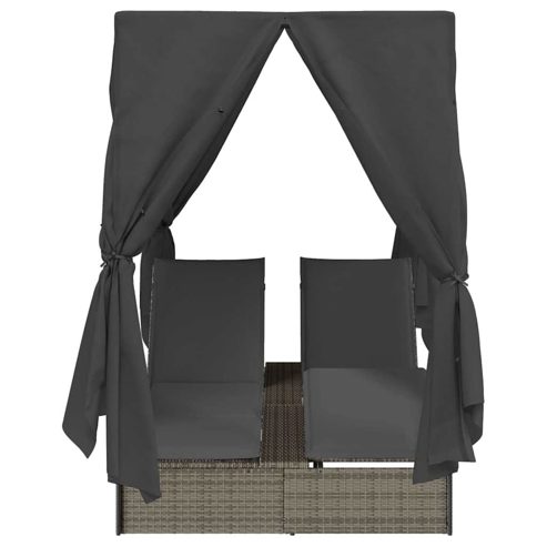 vidaXL Doppelte Sonnenliege mit Dach Grau 205 x 129 x 200 cm PE Rattan