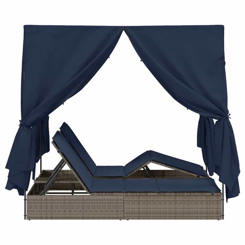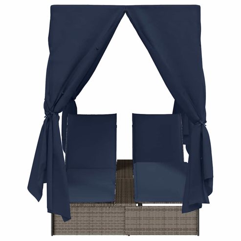 vidaXL Doppelte Sonnenliege mit Dach Grau 205 x 129 x 200 cm PE Rattan