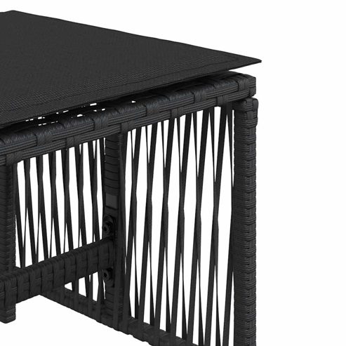 Entspanne dich und genieße die Natur auf diesen bequemen Gartenhockern! Langlebiges Material: PE-Rattan, auch als Poly Rattan bekannt, ist ein robustes, pflegeleichtes synthetisches Material, das die Optik von natürlichem Rattan aufweist. Es kennzeichnet sich durch ein geringes Eigengewicht und lässt sich einfach reinigen. Aufgrund seiner Haltbarkeit und Witterungsbeständigkeit wird es häufig bei der Herstellung von Gartenmöbeln verwendet.Bequemes Sitzerlebnis: Dieser Gartensessel mit dick gepolsterten Kissen bietet ein angenehmes Sitzgefühl.Abnehmbarer und waschbarer Bezug: Diese Sitzkissen verfügen über abnehmbare Bezüge für einfaches Waschen und Pflegen. Robuster und stabiler Rahmen: Dank des pulverbeschichteten Stahlrahmens ist das Outdoor-Möbel robust, stabil und für den täglichen Einsatz im Außenbereich geeignet. Gut zu wissen:Wir empfehlen dir, deine Gartenmöbel mit einer wasserdichten Hülle zu schützen, um lange Zeit eine ansprechende Optik aufzuweisen. ** Hocker: ** Farbe: Schwarz ** Material: PE-Rattan, pulverbeschichteter Stahl ** Abmessungen: 41 x 41 x 36 cm (B x T x H) ** Maximale Tragfähigkeit (pro Sitz ): 110 kg ** UV-beständig ** Zusammenbau erforderlich: Ja ** Kissen: ** Farbe: Schwarz ** Bezugsmaterial: Stoff (100% Polyester) ** Füllung: Schaumstoff ** Abmessungen: 40 x 40 x 2 cm (B x T x H) ** Lieferung umfasst: ** 4 x Gartenhocker ** 4 x Kissen mit abnehmbarem und waschbarem Bezug