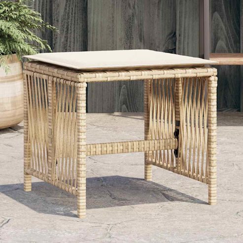 vidaXL Gartenhocker mit Kissen 4 Stk. Beige 41x41x36 cm Poly Rattan