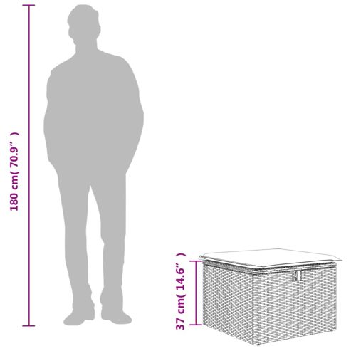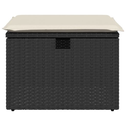 vidaXL Gartenhocker mit Kissen Schwarz 55x55x37 cm Poly Rattan