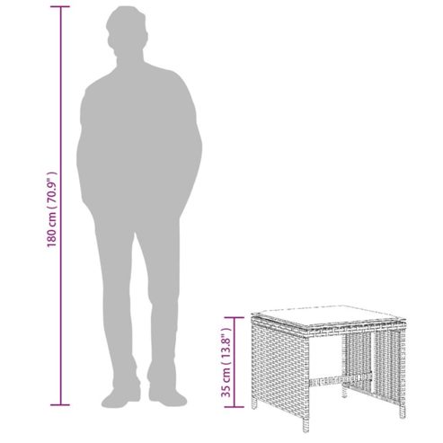 Entspanne dich und genieße die Natur auf diesen bequemen Gartenhockern! Langlebiges Material: PE-Rattan, auch als Poly Rattan bekannt, ist ein robustes, pflegeleichtes synthetisches Material, das die Optik von natürlichem Rattan aufweist. Es kennzeichnet sich durch ein geringes Eigengewicht und lässt sich einfach reinigen. Aufgrund seiner Haltbarkeit und Witterungsbeständigkeit wird es häufig bei der Herstellung von Gartenmöbeln verwendet.Bequemes Sitzerlebnis: Dieser Gartensessel mit dick gepolsterten Kissen bietet ein angenehmes Sitzgefühl.Abnehmbarer und waschbarer Bezug: Diese Sitzkissen verfügen über abnehmbare Bezüge für einfaches Waschen und Pflegen. Robuster und stabiler Rahmen: Dank des pulverbeschichteten Stahlrahmens ist das Outdoor-Möbel robust, stabil und für den täglichen Einsatz im Außenbereich geeignet. Gut zu wissen:Wir empfehlen dir, deine Gartenmöbel mit einer wasserdichten Hülle zu schützen, um lange Zeit eine ansprechende Optik aufzuweisen. ** Hocker: ** Farbe: Grau ** Material: PE-Rattan, pulverbeschichteter Stahl ** Abmessungen: 40 x 40 x 35 cm (B x T x H) ** Maximale Tragfähigkeit (pro Sitz ): 110 kg ** UV-beständig ** Zusammenbau erforderlich: Ja ** Kissen: ** Farbe: Dunkelgrau ** Bezugsmaterial: Stoff (100% Polyester) ** Füllung: Schaumstoff ** Abmessungen: 40 x 40 x 2 cm (B x T x H) ** Lieferung umfasst: ** 4 x Gartenhocker ** 4 x Kissen mit abnehmbarem und waschbarem Bezug Maximal 110 kg pro Sitzplatz. Achte auf die Gefahr von offenem Feuer und anderen starken Wärmequellen in der Nähe des Produkts.