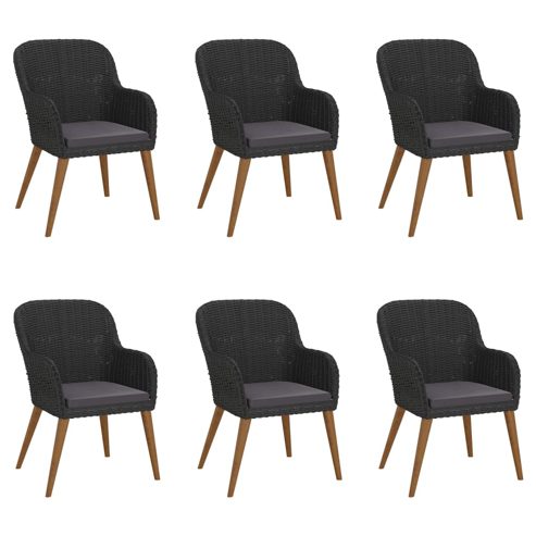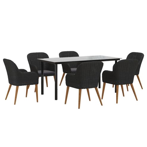 Diese stilvolle Garten-Essgruppe wird der Mittelpunkt deines Gartens oder deiner Terrasse sein! Sie ist eine ausgezeichnete Wahl für Mahlzeiten im Freien oder zum Entspannen in deinem Außenbereich! Massives Akazienholz: Akazien-Massivholz ist ein schönes Naturmaterial. Akazienholz ist ein tropisches Hartholz, das dicht, robust und langlebig ist.Stabiler Rahmen: Dank der pulverbeschichteten Rahmen aus Stahl und Holz ist die Outdoor-Essgruppe robust, stabil und für den täglichen Einsatz im Außenbereich bestens geeignet.Praktische Tischplatte: Die glatte Tischplatte des Esstisches besteht aus Hartglas, das sich leicht mit einem feuchten Tuch reinigen lässt. Zudem bietet die robuste Tischplatte den perfekten Platz für Speisen, Getränke und einige Dekoartikel.Bequemes Erlebnis: Durch ihre ergonomische Form und die dick gepolsterten, abnehmbaren Kissen mit Füllung aus Schaumstoff sorgen die Essstühle für höchsten Sitzkomfort. Hinweis:Um die Lebensdauer deiner Gartenmöbel zu verlängern, empfehlen wir dir, sie mit einer wasserdichten Hülle zu schützen.Jedes Produkt wird mit einer Montageanleitung in der Verpackung für einen einfachen Zusammenbau geliefert. ** Tisch: ** Farbe: Schwarz ** Material: Pulverbeschichteter Stahl, gehärtetes Glas ** Abmessungen: 160 x 80 x 74 cm (L x B x H) ** Stuhl: ** Farbe: Schwarz ** Kissen-Farbe: Dunkelgrau ** Material: Poly Rattan, pulverbeschichteter Stahl, Stoff (100 % Polyester), massives Akazienholz mit einem Ölfinish ** Abmessungen: 56 × 60 × 81,5 cm (B × T × H) ** Sitzgröße: 41 x 45 cm (B x T) ** Sitzhöhe vom Boden: 41 cm ** Armlehnenhöhe vom Boden: 61 cm ** Dicke des Sitzkissens: 3 cm ** Lieferung umfasst: ** 1x Tisch ** 6 x Stuhl ** 6 x Sitzkissen
