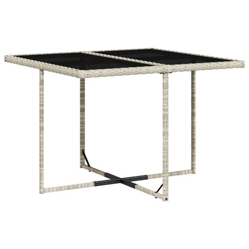Diese Garten-Essgruppe ist eine ideale Wahl für Mahlzeiten im Freien oder einfach nur zum Entspannen im Garten, Hinterhof oder auf der Terrasse. Langlebiges Material: PE-Rattan, auch als Poly Rattan bekannt, ist ein robustes, pflegeleichtes synthetisches Material, das die Optik von natürlichem Rattan aufweist. Es kennzeichnet sich durch ein geringes Eigengewicht und lässt sich einfach reinigen. Aufgrund seiner Haltbarkeit und Witterungsbeständigkeit wird es häufig bei der Herstellung von Gartenmöbeln verwendet.Platzsparende Aufbewahrung: Dank der klappbaren Rückenlehne lassen sich die Stühle unter dem Tisch verstauen. Zudem finden auch die Hocker Platz unter den Stühlen, sodass die gesamte Essgruppe bei Nichtgebrauch eine platzsparende Würfelform bildet, um deinen verfügbaren Platz optimal auszunutzen.Bequemes Sitzerlebnis: Dieser Gartensessel mit dick gepolsterten Kissen bietet ein angenehmes Sitzgefühl.Abnehmbarer und waschbarer Bezug: Die Sitzkissen verfügen über abnehmbare Bezüge, die sich ganz einfach waschen und reinigen lassen. Dank der Klappen an der Rückseite können die Kissen ganz einfach an den Rückenlehnen befestigt werden.Tischplatte aus Glas: Die Tischplatte des Gartentisches besteht aus starkem und langlebigem Hartglas, sodass sie leicht mit einem feuchten Tuch gereinigt werden kann und deinem Außenbereich einen Hauch von Eleganz verleiht. Gut zu wissen:Wir empfehlen dir, deine Gartenmöbel mit einer wasserdichten Hülle zu schützen, um lange Zeit eine ansprechende Optik aufzuweisen. ** Maximale Tragfähigkeit (pro Sitz ): 110 kg ** UV-beständig ** Zusammenbau erforderlich: Ja ** Tisch: ** Tischfarbe: Hellgrau ** Glasfarbe: Schwarz ** Material: PE-Rattan, pulverbeschichteter Stahl, Hartglas ** Abmessungen: 110 x 106 x 73 cm (L x B x H) ** Stuhl: ** Farbe: Hellgrau ** Material: PE-Rattan, pulverbeschichteter Stahl ** Abmessungen: 50,5 x 50 x 79 cm (B x T x H) ** Sitzgröße: 45,5 x 38 cm (B x T) ** Sitzhöhe vom Boden: 43 cm ** Armlehnenhöhe vom Boden: 63,5 cm ** Hocker: ** Farbe: Hellgrau ** Material: PE-Rattan, pulverbeschichteter Stahl ** Abmessungen: 41 x 41 x 36 cm (B x T x H) ** Kissen: ** Farbe: Anthrazit ** Bezugsmaterial: Stoff (100% Polyester) ** Füllung: Schaumstoff ** Abmessungen des Sitzkissens: 76 x 45,5 x 2 cm (L x B x T) ** Abmessungen des Hockerkissens: 40 x 40 x 2 cm (B x T x H) ** Lieferung umfasst: ** 1 x Gartentisch ** 4 x Gartenhocker ** 4 x Hocker-Sitzkissen mit abnehmbarem und waschbarem Bezug ** 4 x Gartenstuhl ** 4 x Hochlehnerauflage mit abnehmbarem und waschbarem Bezug