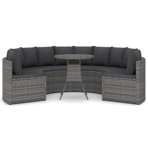 Schaffen Sie einen entspannenden Lounge-Bereich in Ihrem Garten mit diesem Lounge-Set aus Poly-Rattan. Diese gemütliche Garten-Sofagarnitur verfügt über einen pulverbeschichteten Stahlrahmen, der mit PE-Ratten überzogen ist, und ist daher robust und leicht zu reinigen. Die Sofateile bilden zusammen eine Fächerform und stellen eine perfekte Dekoration in Ihrem Außenbereich dar. Darüber hinaus bieten die dick gepolsterten Sitz- und Rückenkissen höchsten Sitzkomfort. Dank seiner Leichtbauweise lässt sich dieses Garten-Lounge-Set auch ganz einfach umstellen. Wichtiger Hinweis: Wir empfehlen, das Lounge-Set bei Regen, Schnee und Frost für eine lange Lebensdauer abzudecken. ** Tisch: ** Farbe: Grau ** Material: PE (Polyethylen) Rattan, pulverbeschichteter Stahl ** Abmessungen: 70 x 73 cm (Durchmesser x H) ** Sofa: ** Farbe: Grau ** Polsterfarbe: Dunkelgrau ** Material: PE-Rattan, pulverbeschichteter Stahl, Stoff (100% Polyester) ** Abmessungen: 88 x 66 x 67 cm (B x T x H) ** Sitzhöhe über dem Boden: 39 cm ** Sitzkissen-Dicke: 5 cm ** Fächerförmiges Design ** Mit verstellbaren Füße zum Nivellieren ** Zusammenbau erforderlich: Ja ** Lieferung enthält: ** 1 x Tisch ** 6 x Sofa ** 6 x Sitzpolster ** 12 x Rückenkissen