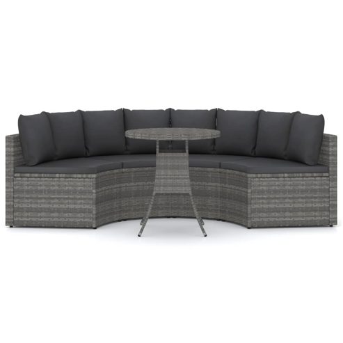 Schaffen Sie einen entspannenden Lounge-Bereich in Ihrem Garten mit diesem Lounge-Set aus Poly-Rattan. Diese gemütliche Garten-Sofagarnitur verfügt über einen pulverbeschichteten Stahlrahmen, der mit PE-Ratten überzogen ist, und ist daher robust und leicht zu reinigen. Die Sofateile bilden zusammen eine Fächerform und stellen eine perfekte Dekoration in Ihrem Außenbereich dar. Darüber hinaus bieten die dick gepolsterten Sitz- und Rückenkissen höchsten Sitzkomfort. Dank seiner Leichtbauweise lässt sich dieses Garten-Lounge-Set auch ganz einfach umstellen. Wichtiger Hinweis: Wir empfehlen, das Lounge-Set bei Regen, Schnee und Frost für eine lange Lebensdauer abzudecken. ** Tisch: ** Farbe: Grau ** Material: PE (Polyethylen) Rattan, pulverbeschichteter Stahl ** Abmessungen: 70 x 73 cm (Durchmesser x H) ** Sofa: ** Farbe: Grau ** Polsterfarbe: Dunkelgrau ** Material: PE-Rattan, pulverbeschichteter Stahl, Stoff (100% Polyester) ** Abmessungen: 88 x 66 x 67 cm (B x T x H) ** Sitzhöhe über dem Boden: 39 cm ** Sitzkissen-Dicke: 5 cm ** Fächerförmiges Design ** Mit verstellbaren Füße zum Nivellieren ** Zusammenbau erforderlich: Ja ** Lieferung enthält: ** 1 x Tisch ** 4 x Sofa ** 4 x Sitzkissen ** 8 x Rückenkissen