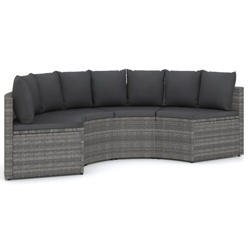 Schaffen Sie einen entspannenden Lounge-Bereich in Ihrem Garten mit diesem Lounge-Set aus Poly-Rattan. Diese gemütliche Garten-Sofagarnitur verfügt über einen pulverbeschichteten Stahlrahmen, der mit PE-Ratten überzogen ist, und ist daher robust und leicht zu reinigen. Die Sofateile bilden zusammen eine Fächerform und stellen eine perfekte Dekoration in Ihrem Außenbereich dar. Darüber hinaus bieten die dick gepolsterten Sitz- und Rückenkissen höchsten Sitzkomfort. Dank seiner Leichtbauweise lässt sich dieses Garten-Lounge-Set auch ganz einfach umstellen. Wichtiger Hinweis: Wir empfehlen, das Lounge-Set bei Regen, Schnee und Frost für eine lange Lebensdauer abzudecken. ** Farbe: Grau ** Polsterfarbe: Dunkelgrau ** Material: PE-Rattan, pulverbeschichteter Stahl, Stoff (100% Polyester) ** Abmessungen jedes Sofas: 88 x 66 x 67 cm (B x T x H) ** Sitzhöhe über dem Boden: 39 cm ** Sitzkissen-Dicke: 5 cm ** Fächerförmiges Design ** Mit verstellbaren Füße zum Nivellieren ** Zusammenbau erforderlich: Ja ** Lieferung enthält: ** 4 x Sofa ** 4 x Sitzkissen ** 8 x Rückenkissen