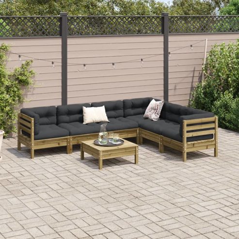 vidaXL 7-tlg. Garten-Sofagarnitur mit Kissen Kiefernholz Imprägniert