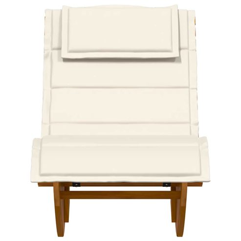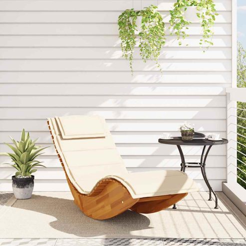 Diese Schaukelliege aus Holz eignet sich ideal zum Sonnenbaden und Entspannen in der Nähe des Pools, auf der Terrasse oder im Garten. Robust und stabil: Massives Akazienholz ist für seine Festigkeit und Haltbarkeit bekannt. Seine Farbtöne und einzigartige Maserung verleihen ihm eine attraktive Optik. Dank seiner ausgezeichneten Stabilität und Witterungsbeständigkeit eignet sich das Holz ideal für die Herstellung von Innen- und Außenmöbeln.Sicheres & beruhigendes Schaukeln: Du kannst auf dieser Gartenliege sanft hin und her schaukeln, um dich in deiner Freizeit zu entspannen. Die Bodenstopper verhindern, dass der Holz-Schaukelstuhl umkippt und bieten dir ein sicheres Schaukelerlebnis.Ergonomisches Design: Die Sonnenliege verfügt über eine ergonomisch geformte Liegefläche, die sich den Konturen deines Körpers anpasst, sodass du dich in aller Ruhe entspannen kannst.Gute Belüftung und Verhinderung von Ansammlungen: Das Latten-Design sorgt für eine optimale Luftzirkulation und verhindert effektiv, dass sich Wasser ansammelt, wodurch die Sitzfläche stets bequem trocken bleibt.Bequemes Sitzerlebnis: Dieser Gartensessel mit dick gepolsterten Kissen bietet ein angenehmes Sitzgefühl. Gut zu wissen:Wir empfehlen dir, deine Gartenmöbel mit einer wasserdichten Hülle zu schützen, um lange Zeit eine ansprechende Optik aufzuweisen. ** Sonnenliege: ** Material: Akazien-Massivholz, mit Öl behandelt ** Gesamtabmessungen: 154 x 60 x 74 cm (L x B x H) ** Sitzhöhe: 20/38 cm ** Max. Belastbarkeit: 110 kg ** Zusammenbau erforderlich: Ja ** Kissen: ** Farbe: Cremeweiß ** Bezugsmaterial: Stoff (100% Polyester) ** Füllung: Schaumstoff ** Abmessungen: 185 x 60 x 3 cm (L x B x T) ** Abmessungen des Kopfkissens: 45,5 x 26,5 x 3 cm (L x B x T) ** Lieferung umfasst: ** 1 x Sonnenliege ** 1 x Sitzpolster ** 1 x Kopfkissen
