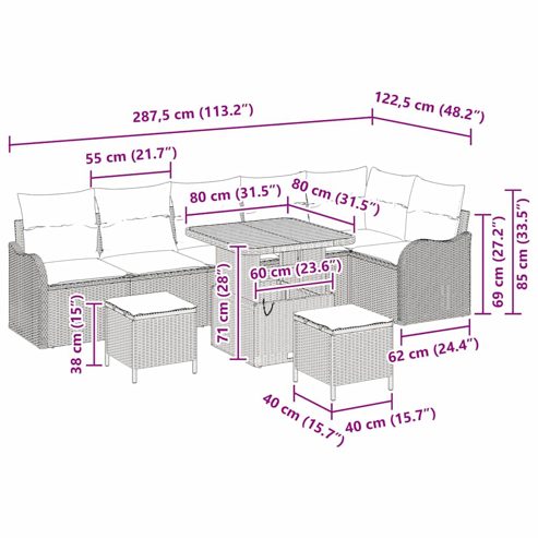 vidaXL Garten-Sofa-Set 9 pcs Beige und Hellgrau 80 x 80 x 71 cm