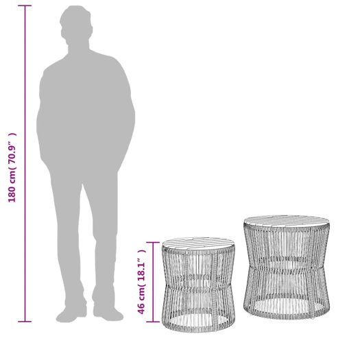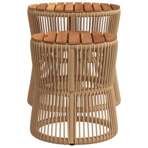 An diesen eleganten Gartentischen kannst du im Garten, im Hinterhof oder auf der Terrasse mit Familie und Freunden eine Tasse Kaffee und ein angenehmes Gespräch genießen! Langlebiges Material: PE-Rattan, auch als Poly Rattan bekannt, ist ein robustes, pflegeleichtes synthetisches Material, das die Optik von natürlichem Rattan aufweist. Es kennzeichnet sich durch ein geringes Eigengewicht und lässt sich einfach reinigen. Aufgrund seiner Haltbarkeit und Witterungsbeständigkeit wird es häufig bei der Herstellung von Gartenmöbeln verwendet.Tischplatte aus Holz: Die Tischplatte des Gartentisches besteht aus robustem und langlebigem Akazienholz, sodass sie leicht mit einem feuchten Tuch gereinigt werden. Der Outdoor-Tisch verleiht deinem Außenbereich einen Hauch von Eleganz.Robustes und stabiles Gestell: Dank des pulverbeschichteten Stahlgestells ist der Beistelltisch robust, stabil und für den täglichen Einsatz im Außenbereich geeignet.Platzsparend: Der kleinere Beistelltisch lässt sich platzparend im größeren Tisch verstauen. Gut zu wissen:Wir empfehlen dir, deine Gartenmöbel mit einer wasserdichten Hülle zu schützen, um lange Zeit eine ansprechende Optik aufzuweisen. ** Farbe: Beige und Braun ** Material: PE-Rattan, pulverbeschichteter Stahl, massives Akazienholz mit Ölfinish ** Abmessungen des großem Tisches: 50 x 50 cm (Durchmesser x H) ** Abmessungen des kleinen Tisches: 38 x 46 cm (Durchmesser x H) ** Holzstärke: 1,2 cm ** Größe des Grifflochs: 7 x 2,5 cm (L x B) ** Linien-Webdesign ** Zusammenbau erforderlich: Ja ** Lieferung umfasst: ** 1 x Garten-Beistelltisch (groß) ** 1 x Garten-Beistelltisch (klein)