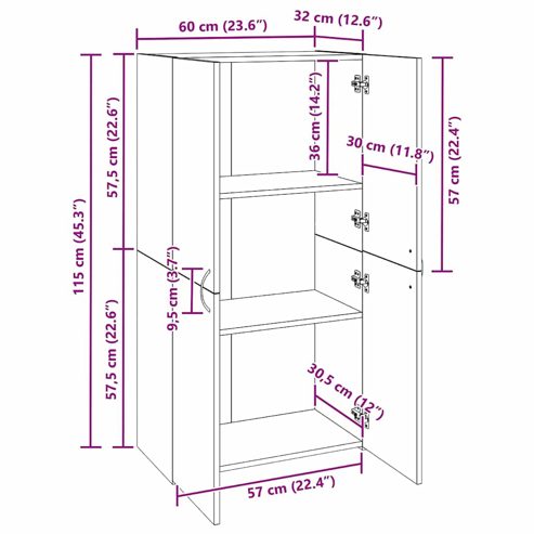 Dieser Büroschrank aus Holzwerkstoff ist genau das Richtige für deinen Arbeitsbereich. Mit einem rustikalen Stil, der einen Hauch von natürlichem Charme hat, fügt er sich super ein und ist echt praktisch. Der Schrank hat viel Platz für Bücher, Dokumente und Utensilien und ist zudem langlebig. Er ist genau das, was du brauchst, um deinen Arbeitsplatz zu organisieren und die Produktivität zu erhöhen. Robuster Holzwerkstoff: Dieser Büroschrank besteht komplett aus Holzwerkstoff. Damit weißt du, dass er robust und schick ist. Er hält den Alltag aus, ohne dabei seinen Charme zu verlieren und bietet eine stylische, praktische Aufbewahrungsmöglichkeit für jeden professionellen Raum. Viel Stauraum: Mit verschiedenen Fächern und Regalen aus Holzwerkstoff hast du jede Menge Platz, um deine Büroartikel ordentlich zu halten. So kannst du Dokumente und Utensilien entspannt sortieren, die Unordnung reduzieren und die Effizienz an deinem Arbeitsplatz steigern. Praktisches Design: Das Design ist voll auf Praktikabilität ausgelegt, sodass alles besser funktioniert und benutzerfreundlicher ist. Er sieht sowohl in rustikalen als auch in modernen Büroumgebungen toll aus und ist damit super flexibel einsetzbar. Nur für den Innenbereich: Dieser Schrank ist für Innenräume gedacht, funktioniert am besten in klimatisierten Bereichen und bietet eine solide Lösung zur Organisation, egal ob Winter oder Frühling. Montage nötig: Du musst ihn mit einem Freund zusammenbauen und brauchst dafür einfache Werkzeuge wie Schraubendreher, Hammer, Maßband und Bohrmaschine. Die Montage zeigt, dass er robust gebaut ist und lange hält, sobald er einmal zusammengebaut ist. ** Farbe: Altholz ** Material: Holzwerkstoff ** Gesamtabmessungen: 60 x 32 x 115 cm (L x W x H) ** Gewicht: 23.2 kg ** Mit 3 regalen ** Mit 2 türen ** Innen- / außenbereich: Indoor only ** Anzahl der elemente: 1 ** Versammlung erforderlich: Yes
