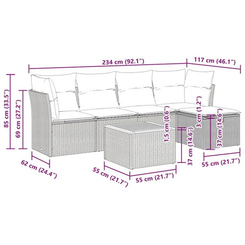 vidaXL 6-tlg. Garten-Sofagarnitur mit Kissen Schwarz Poly Rattan