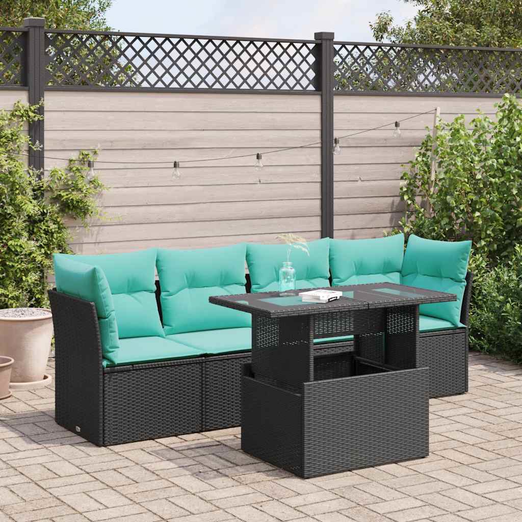 vidaXL 5tlg. Garten-Sofagarnitur mit Kissen Schwarz Poly Rattan Akazie