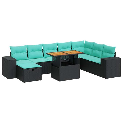 vidaXL 9-tlg. Garten-Sofagarnitur mit Kissen Schwarz Poly Rattan