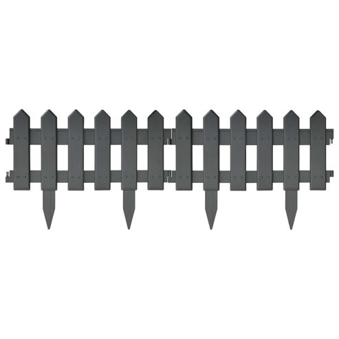 Mit diesen Beeteinfassungen lassen sich deine Gemüse- oder Blumenbeete ganz einfach abgrenzen. Das hochwertige PP-Material sorgt dafür, dass der Beetzaun UV- und witterungsbeständig und damit für den langfristigen Einsatz im Freien geeignet ist. Du kannst mehrere Elemente miteinander verbinden, um die benötigte Länge (bis zu 10 Meter) zu erreichen. Dank der Spitzen lassen sich die Rasenkanten einfach und sicher in den Boden stecken. ** Farbe: Anthrazit ** Material: PP ** Gesamtgröße: 10 m x 29 cm (B x H) ** Größe (jede Rasenkante ohne Spitzen): 40 x 29 cm (B x H) ** Eigentliche Höhe: 19,5 cm ** Zusammenbau erforderlich: Ja ** Lieferung umfasst: ** 25 x Rasenkante