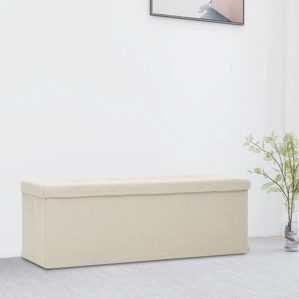 vidaXL Faltbare Sitzbank mit Stauraum Cremeweiß Leinenoptik