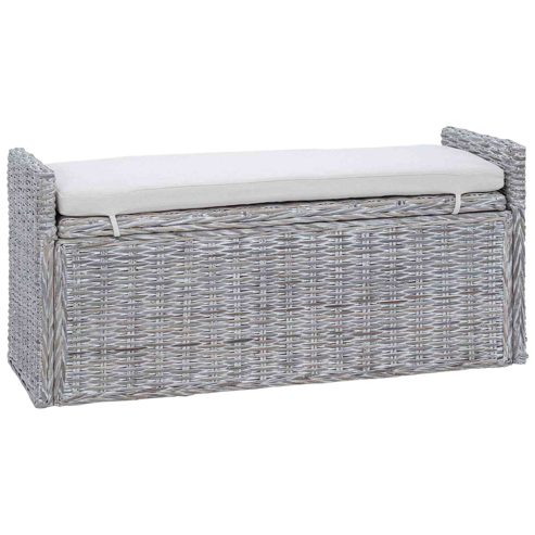 vidaXL Sitzbank mit Stauraum Weiß gewaschen 110 x 40 x 50 cm Rattan