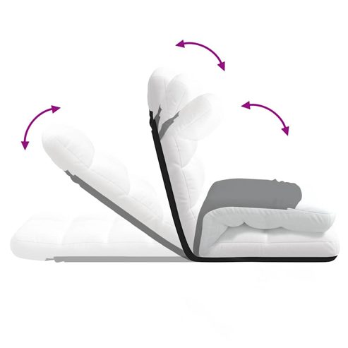 Erlebe Komfort und Vielseitigkeit mit diesem klappbaren Bodenstuhl. Bequemer und stabiler Halt: Dieser Bodensessel verfügt über einen langlebigen Metallrahmen für stabilen Halt und eine weiche, pflegeleichte Stoffpolsterung und bietet dauerhaften Komfort und Zuverlässigkeit.Manuelle Liegefunktion: Dieses Bodensofa ist speziell mit 5 Liegepositionen ausgestattet, sodass du die Rückenlehne und Kopfstütze manuell nach deinem Komfort einstellen kannst.Klappbares Design: Der gepolsterte Bodenstuhl lässt sich zur bequemen Aufbewahrung und zum Transport einfach zusammenklappen.Breite Anwendungen: Der Bodenstuhl eignet sich für eine Vielzahl von Aktivitäten - ob du nun Videospiele spielst, meditierst, liest, entspannst, Yoga machst, fernsiehst oder an Seminaren und Diskussionsgruppen im Büro teilnimmst. Er passt sich an all deine Sitzbedürfnisse an. ** Farbe: Weiß ** Material: Stoff (100 % Polyester), Metall ** Füllmaterial: Schaumstoff, Faser ** Abmessungen (stehend): 71 x 51 x 62 cm (L x B x H) ** Abmessungen (liegend): 112 x 51 x 12 cm (L x B x H) ** Sitztiefe: 44 cm ** Max. Belastbarkeit: 110 kg ** 5-fach verstellbar ** Zusammenbau erforderlich: Ja
