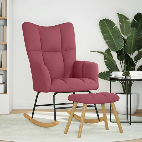vidaXL Schaukelstuhl mit Fußhocker Weinrot Stoff
