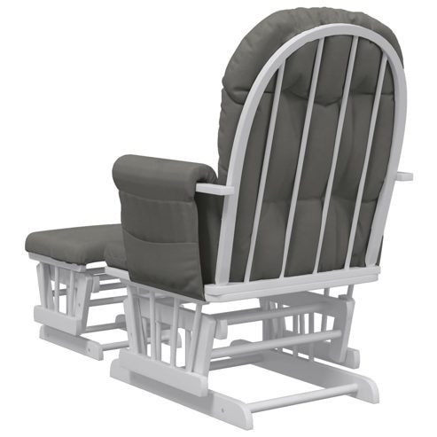 Entspanne dich und genieße deine Freizeit auf diesem stylischen Schaukelsessel mit Hocker! Gleitfunktion: Der Relaxsessel und der mitgelieferte Fußhocker lassen sich hin und her bewegen und eignen sich somit ideal zum Füttern und Beruhigen deines Babys. Breite Anwendung: Dieser Schaukelstuhl lässt sich überall im Haus einsetzen, sei es im Kinderzimmer, um dich um dein Baby zu kümmern, oder im Wohn- bzw. Schlafzimmer zum Entspannen.Langlebiges Material: Massives Kautschukholz ist ein wunderschönes Naturmaterial. Kautschukholz besitzt eine dichte Maserung und ist stoßfest und langlebig. Stoff weist eine schlichte und saubere Optik auf und ist auch atmungsaktiv und langlebig.Bequemes Sitzerlebnis: Der Schaukelsessel ist mit dicken Kissen und gepolsterten Armlehnen versehen, um höchsten Komfort zu bieten.Praktisches Design: Dieser gleitende Schaukelstuhl verfügt über Seitentaschen, in denen du kleine Gegenstände in Reichweite aufbewahren kannst. Gut zu wissen:Um die Montage so einfach wie möglich zu machen, wird jedes Produkt mit einer Anleitung geliefert. ** Stofffarbe: Dunkelgrau ** Rahmenfarbe: Weiß ** Material: Stoff (100 % Polyester), massives Kautschukholz ** Abmessungen des Stuhls: 70 x 72 x 107 cm (B x T x H) ** Abmessungen des Hockers: 49 x 39 x 34 cm (B x T x H) ** Sitzbreite: 56 cm ** Sitztiefe: 46 cm ** Sitzhöhe vom Boden: 45 cm ** Maximale Tragfähigkeit (pro Sitz ): 110 kg Maximal 110 kg pro Sitzplatz. Achte auf die Gefahr von offenem Feuer und anderen starken Wärmequellen in der Nähe des Produkts.