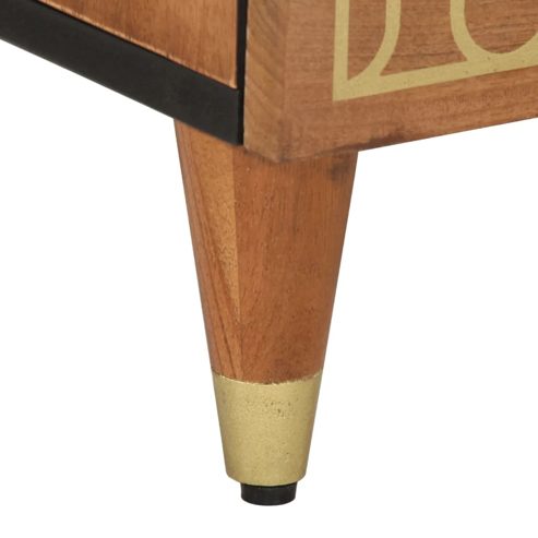 Diese Nachttische mit elegantem Design sind eine zeitlose Ergänzung deiner Inneneinrichtung. Massives Mangholz: Massives Mangoholz ist ein robustes, tropisches Hartholz, aus dem sich robuste Möbel herstellen lassen. Seine optisch ansprechende Holzmaserung macht jedes Möbelstück zu einem Unikat. Der Schrank ist aus massivem Mangoholz gefertigt und daher langlebig und stabil.Reichlich Stauraum: Der Nachttisch ist mit 2 Schubladen ausgestattet, um verschiedene Sachen ordentlich und griffbereit aufzubewahren.Stabile Oberplatte: Die Oberplatte des Beistellschranks bietet den perfekten Platz, um Dekoartikel, Bilderrahmen und Topfpflanzen zur Schau zu stellen.Starke Beine: Die Eisenbeine tragen zur Robustheit und Stabilität der Nachtkommode bei.Retro-Stil: Mit einem handgeschnitzten Blumenmuster versehen, bringt dieser Nachttisch den Luxus des Retro-Stils in dein Interieur und wird überall ein echter Hingucker sein. Gut zu wissen:Jedes Stück ist ein Unikat, das in Farbe und Maserung variiert. Die Lieferung erfolgt in zufälliger Reihenfolge, wodurch die Exklusivität und Individualität deines Produkts gewährleistet wird. ** Material: Massives Mangoholz mit honigbraunem Finish, Holzwerkstoff, Eisen ** Abmessungen: 40 x 33 x 46 cm (B x T x H) ** Mit handgeschnitztem Muster ** Zusammenbau erforderlich: Ja ** Lieferung umfasst: ** 2 x Nachttisch