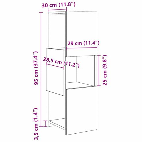 Dieser moderne Eckschrank verbindet stylisches Design mit praktischen Aufbewahrungsmöglichkeiten. Sein schlankes Design passt ideal in Zimmerecken und nutzt Platz optimal, während er einen zeitgenössischen Flair in deine Wohnung bringt. Der minimalistische Stil passt super in moderne Wohnzimmer und erfüllt alle Bedürfnisse der Aufbewahrung mit seinen vielseitigen Regalen und Fächern. Material aus Holzwerkstoff: Der Schrank ist aus robustem Holzwerkstoff gefertigt und bietet langfristige Lagerlösungen. Das Material ist widerstandsfähig gegen Abnutzung und ergänzt verschiedene Einrichtungsstile mit seiner neutralen Farbpalette. Platzsparende Eckregale: Diese Regale passen perfekt in Wohnzimmerecken, um den Raum optimal zu nutzen. Sie sind ideal für Bücher, Deko oder alltägliche Gegenstände, die griffbereit und dennoch unsichtbar sein sollen. Das durchdachte Design maximiert die Funktionalität ohne ansprechende Ästhetik zu verlieren. Funktionale Aufbewahrungsmöglichkeiten: Mit mehreren Fächern zum Organisieren und Lagern von Gegenständen ist der Schrank perfekt für alle, die Eleganz und Funktionalität schätzen. Ob du Dekoartikel ausstellen oder wichtige Dinge lagern möchtest, er erfüllt viele Bedürfnisse. Minimalistisches Finish: Das saubere, matte Finish sorgt für einen modernen Look in deinem Zuhause. Die nicht reflektierende Oberfläche fügt sich in jede Einrichtung ein und steigert die Ästhetik deines Wohnraums. Das schlichte Design bleibt über die Jahre hinweg aktuell und behält seinen Stil. Einfache Pflegehinweise: Halte den Schrank mit einem feuchten Tuch sauber und befestige ihn zur Sicherheit an der Wand, damit er nicht umkippt. Diese einfache Pflege macht ihn zu einem praktischen sowie ansprechenden Möbelstück. ** Farbe: Weiß ** Material: Holzwerkstoff ** Gesamtabmessungen: 30,5 x 30 x 95 cm (L x B x H) ** mit 3 Regalen ** Maße der einzelnen Regalböden: 27,5 x 27 x 1,5 cm (B x L x H) ** Anzahl Staufächer: 3 ** Montage erforderlich: Ja ** Lieferumfang: ** 1 x Eckschrank