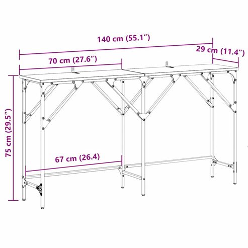 vidaXL Konsolentisch Schwarze Eiche 140 x 29 x 75 cm Holzwerkstoff
