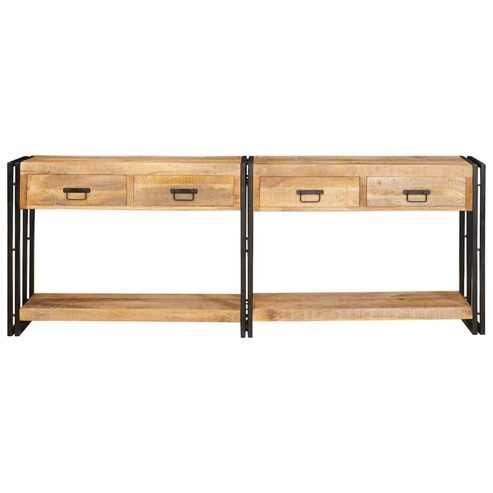 vidaXL Konsolentisch mit Schubladen 2 pcs Braun Raues Mango-Massivholz