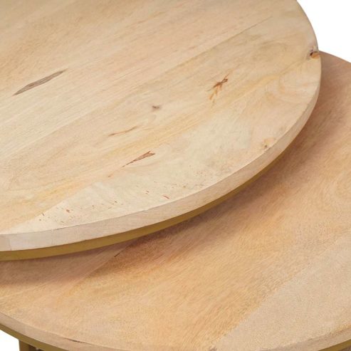 Dieses Set von Nesting-Couchtischen kombiniert die natürliche Schönheit von massivem Mangoholz mit dem industriellen Charme von pulverbeschichtetem Stahl. Sie sind für ein modernes Zuhause gedacht und bestechen durch ihre schlichte, runde Form und ihren minimalistischen Style. Diese Tische sind ideal für Wohnzimmer, denn sie bieten eine flexible Lösung, um Deko zu präsentieren, Getränke abzustellen und Bücher oder Magazine zu organisieren. Die Kombination von Materialien und durchdachtem Design macht sie zu echten Blickfängern, die Stil und Funktionalität vereinen. Hochwertige Materialien Diese Tische sind aus solidem Mangoholz gefertigt und besitzen eine tolle, natürliche Textur sowie schöne Holzmaserungen. Ein stabiler Rahmen aus pulverbeschichtetem Stahl sorgt für Haltbarkeit und einen modernen, industriellen Look. Nesting-Funktionalität Mit ihrer cleveren Nesting-Funktion eignen sich diese Tische super für kleinere Räume. Der kleinere Tisch kann einfach unter den größeren geschoben werden, was dir hilft, Platz zu sparen, wenn du sie nicht brauchst. Ihr praktisches Design erlaubt es dir, die Tische problemlos zu bewegen und neu anzuordnen. Vielseitige Nutzung Diese Tische sind als Trio designt und erfüllen viele Zwecke. Ob du sie für Deko, Snacks bei Treffen oder für deinen Kaffee am Morgen nutzt, sie sind kinderfreundlich, da sie keine scharfen Kanten haben und eine sichere, einladende Atmosphäre im Wohnzimmer schaffen. Minimale Montage erforderlich Die Montage der Tische ist einfach und erfordert nur grundlegende Werkzeuge. Mit klaren Anleitungen geht alles fix und unkompliziert, sodass du deine neuen Tische schnell in deinem Raum aufstellen kannst. Pflegehinweise Die Holzoberfläche lässt sich leicht mit einem trockenen Tuch reinigen, um ihre natürliche Schönheit zu bewahren. Vermeide scharfe Chemikalien, die dem Holz oder Stahl schaden könnten, und reibe sie vorsichtig ab, um den Glanz bei Bedarf aufzufrischen. Mit der richtigen Pflege sorgen sie für eine lange Lebensdauer und bleiben dabei immer schön anzusehen. ** Farbe: Weiß ** Material: Massivholz Mango und Stahl ** Gesamtabmessungen: 54 x 54 x 40 cm (L x B x H) ** Montage erforderlich: Ja