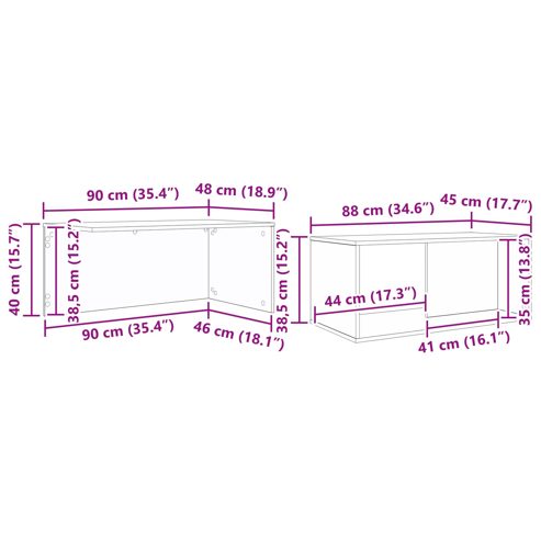 Dieses moderne Couchtisch-Set bringt Style und Funktionalität in jeden Wohnraum. Sein schlankes, rechteckiges Design passt zu vielfältigen Einrichtungsstilen. Es ist perfekt für einen Platz, der sowohl praktisch als auch hübsch sein soll. Die zwei Tische bieten genügend Platz für Getränke, Zeitschriften oder Deko und machen es zum Mittelpunkt deiner Treffen oder entspannenden Nachmittage. Hochwertige Materialien Die Tische in diesem Set sind aus Holzwerkstoff, der für seine Haltbarkeit und Widerstandsfähigkeit bekannt ist. Das Material sorgt dafür, dass die Tische stabil bleiben, egal wie oft sie genutzt werden – perfekt für Familien, Gäste oder wenn du Freunde einlädst. Die Oberfläche hält dem täglichen Gebrauch stand und sieht dabei weiterhin gut aus. Schickes Design Diese Couchtische bringen mit ihrem schlanken Rechteckformat modernen Flair in dein Wohnzimmer. Jedes Stück strahlt zeitlose Eleganz aus und bietet viel Platz für Getränke, Bücher oder Deko. Das minimalistische Design passt in jeden Raum und ist flexibel genug für verschiedene Einrichtungsstile. Praktische Komponenten Mit hübschen und gut verarbeiteten Rückseiten sehen diese Tische von allen Seiten gut aus. Die Tische können mittig im Raum platziert werden, was für ein sauberes und ordentliches Bild sorgt. Ohne Schubladen oder Regale hast du schnellen Zugriff auf alles, was auf der Oberfläche liegt – ideal für moderne Wohnräume. Vielseitige Anwendung Diese Tische sind perfekt für den Innenbereich und speziell fürs Wohnzimmer gedacht. Ihre leichte Bauweise ermöglicht, dass du sie leicht umstellen kannst – ob bei einem kleinen Treffen oder einer großen Feier. Stell sie neben das Sofa, um einen bequemen Platz für Drinks während eines Films oder Snacks während einer Party zu haben. Einfache Pflege Um die Langlebigkeit dieser Couchtische zu sichern, vermeide scharfe Chemikalien und Scheuermittel beim Reinigen. So bleibt die Oberfläche schön und du hast lange Freude an deinen Tischen. ** Farbe: Weiß ** Material: Holzwerkstoff ** Gesamtabmessungen: 90 x 48 x 40 cm (L x B x H) ** Langlebig ** Nur für den Innenbereich ** Montage erforderlich: Ja ** Lieferumfang: ** 1 x Couchtisch: 90 x 48 x 40 cm (LxBxH) ** 1 x Couchtisch: 88 x 45 x 38,5 cm (LxBxH)