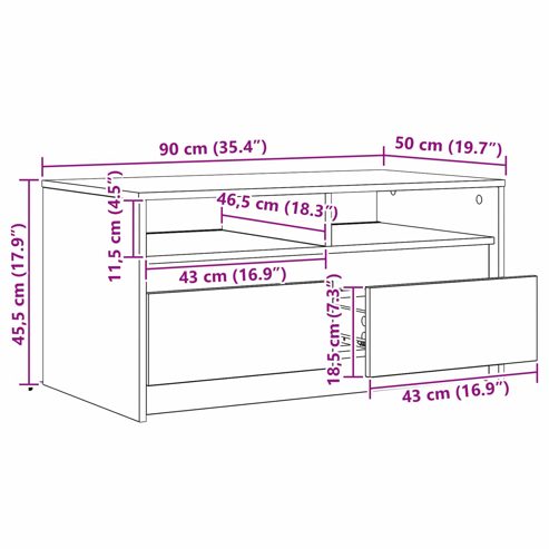 vidaXL Couchtisch Kunsthandwerk Eiche 90 x 50 x 45 cm Holzwerkstoff