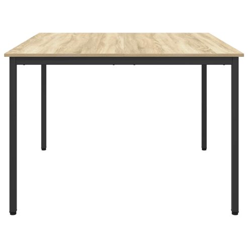 Dieser rechteckige Esstisch vereint moderne Ästhetik mit praktischem Design und ist ein toller Mittelpunkt für jedes Esszimmer oder jede Küche. Mit klaren Linien und einem minimalistischen Look ist er ideal für zeitgenössische Wohnungen, die einen Hauch von Eleganz hinzufügen wollen. Seine vielseitige Form ergänzt viele Einrichtungsstile und bietet eine praktische Fläche für Abendessen oder alltägliche Mahlzeiten. Oberfläche aus Holzwerkstoff Der Tisch hat eine strapazierfähige Holzwerkstoff-Oberfläche, die Langlebigkeit und Widerstandsfähigkeit bei täglicher Nutzung garantiert. Sie ist leicht zu reinigen und hat ein schickes Finish, das euer Esszimmer aufwertet. Die glatte Textur ist ideal für gesellige Runden und entspannte Familienessen. Schwarzer Metallrahmen Der elegante schwarze Metallrahmen bietet starke Unterstützung und sorgt für Stabilität während des Gebrauchs. Sein modernes Aussehen fügt sich nahtlos in zeitgemäße Dekore ein und ist perfekt für Esszimmer und offene Wohnräume. Quadratische Metallbeine Diese stabilen Beine sorgen nicht nur für ein modernes Design, sondern bieten auch eine sichere Basis. Sie sind langlebig und garantieren, dass der Tisch über die Jahre stabil bleibt – ideal für ein sicheres Esserlebnis. Einfache Handhabung Der Tisch ist ganz praktisch designed, sodass die Nutzung unkompliziert ist. Ein einfaches Wischen mit einem feuchten Tuch reicht, um ihn sauber zu halten – perfekt für beschäftigte Haushalte oder häufige Gastgeber. Zusammenbau erforderlich Der Zusammenbau ist unkompliziert und benötigt nur zwei Personen und einen Schraubendreher, damit ihr euren Essbereich schnell einrichten könnt. Das macht ihn ideal für Haushalte, die rasch ihren Essbereich aufwerten möchten. ** Material: METALL ** Gesamtabmessungen: 110 x 110 x 75 cm (L x B x H) ** Langlebig ** Robust ** Einfach zu reinigen ** Rahmenmaterial: Metall ** Nur für den Innenbereich ** Lieferumfang: ** 1 x Esstisch ** Montage erforderlich: Ja