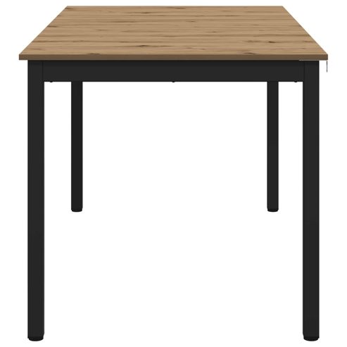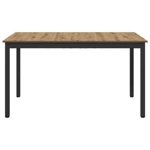 Dieser rechteckige Esstisch vereint moderne Ästhetik mit praktischem Design und ist ein toller Mittelpunkt für jedes Esszimmer oder jede Küche. Mit klaren Linien und einem minimalistischen Look ist er ideal für zeitgenössische Wohnungen, die einen Hauch von Eleganz hinzufügen wollen. Seine vielseitige Form ergänzt viele Einrichtungsstile und bietet eine praktische Fläche für Abendessen oder alltägliche Mahlzeiten. Oberfläche aus Holzwerkstoff Der Tisch hat eine strapazierfähige Holzwerkstoff-Oberfläche, die Langlebigkeit und Widerstandsfähigkeit bei täglicher Nutzung garantiert. Sie ist leicht zu reinigen und hat ein schickes Finish, das euer Esszimmer aufwertet. Die glatte Textur ist ideal für gesellige Runden und entspannte Familienessen. Schwarzer Metallrahmen Der elegante schwarze Metallrahmen bietet starke Unterstützung und sorgt für Stabilität während des Gebrauchs. Sein modernes Aussehen fügt sich nahtlos in zeitgemäße Dekore ein und ist perfekt für Esszimmer und offene Wohnräume. Quadratische Metallbeine Diese stabilen Beine sorgen nicht nur für ein modernes Design, sondern bieten auch eine sichere Basis. Sie sind langlebig und garantieren, dass der Tisch über die Jahre stabil bleibt – ideal für ein sicheres Esserlebnis. Einfache Handhabung Der Tisch ist ganz praktisch designed, sodass die Nutzung unkompliziert ist. Ein einfaches Wischen mit einem feuchten Tuch reicht, um ihn sauber zu halten – perfekt für beschäftigte Haushalte oder häufige Gastgeber. Zusammenbau erforderlich Der Zusammenbau ist unkompliziert und benötigt nur zwei Personen und einen Schraubendreher, damit ihr euren Essbereich schnell einrichten könnt. Das macht ihn ideal für Haushalte, die rasch ihren Essbereich aufwerten möchten. ** Material: METALL ** Gesamtabmessungen: 140 x 80 x 75 cm (L x B x H) ** Langlebig ** Robust ** Einfach zu reinigen ** Rahmenmaterial: Metall ** Nur für den Innenbereich ** Lieferumfang: ** 1 x Esstisch ** Montage erforderlich: Ja